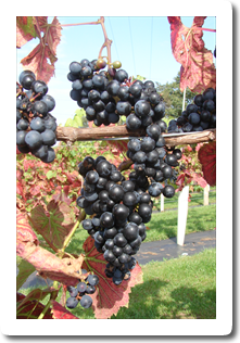 Regent - A hybrid variety grown for its good disease resistance, low acidity and high sugars.